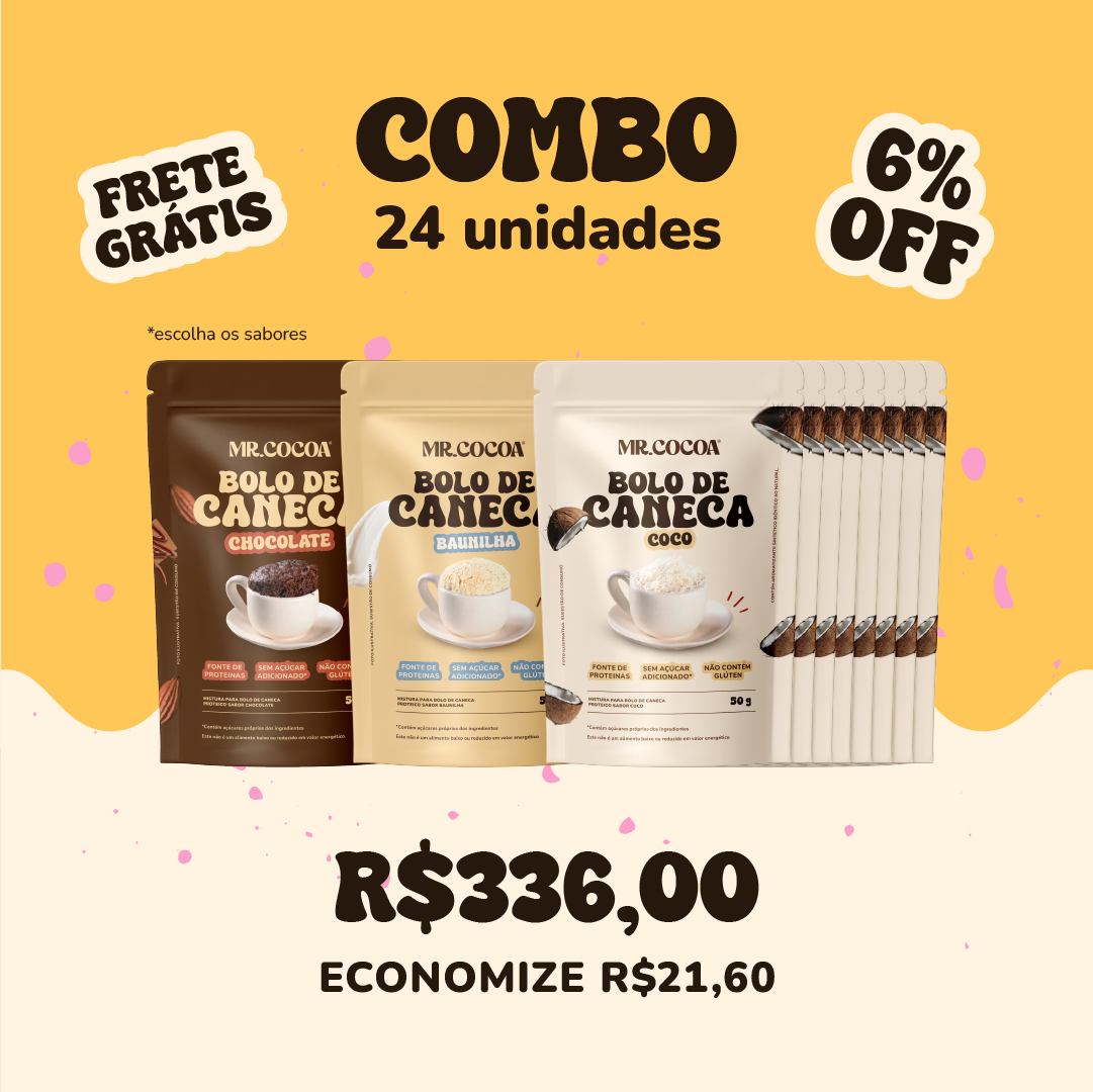 Aproveite o nosso Combo Mr. Cocoa Proteico e leve mais praticidade, nutrição e sabor para a sua rotina com um desconto especial! Perfeito para quem não abre mão de uma alimentação equilibrada, com aquele toque doce que cabe no seu dia a dia – sem glúten, sem açúcar adicionado e com 12g de proteína por porção.